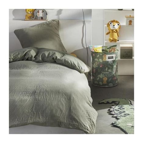 Parure de lit - TODAY - 123327 - 1 personne - 140x200 cm - Gaze de coton unie - Sauge