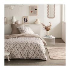 La parure de lit TODAY Crazy séduit par son imprimé graphique audacieux qui apporte une touche contemporaine à votre chambre. Son motif unique et son coloris beige polyvalent s'adaptent à tous les styles de décoration, du minimaliste au bohème.