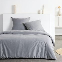 Parure de lit - TODAY - Essential - 2 personnes - 220 x 240 cm - Effet crépon gris