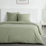 Une touche de fraîcheur et de sérénité ! La parure de lit Essential effet lavé par Today apporte douceur et style a votre chambre. Elle se compose d'une housse de couette 220x240 cm et de 2 taies d'oreiller 63x63 cm pour lit 2 personnes. Sa matiere 100 % polyester (85 g/m²) est légere, seche rapidement et ne nécessite pas de repassage. Lavage en machine a 40 °C. Son coloris sauge effet lavé crée une atmosphere naturelle et apaisante. Un choix idéal pour un intérieur tendance et confortable !