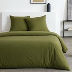 Parure de lit - TODAY - Essential - 2 personnes - 220 x 240 cm - Effet lavé vert