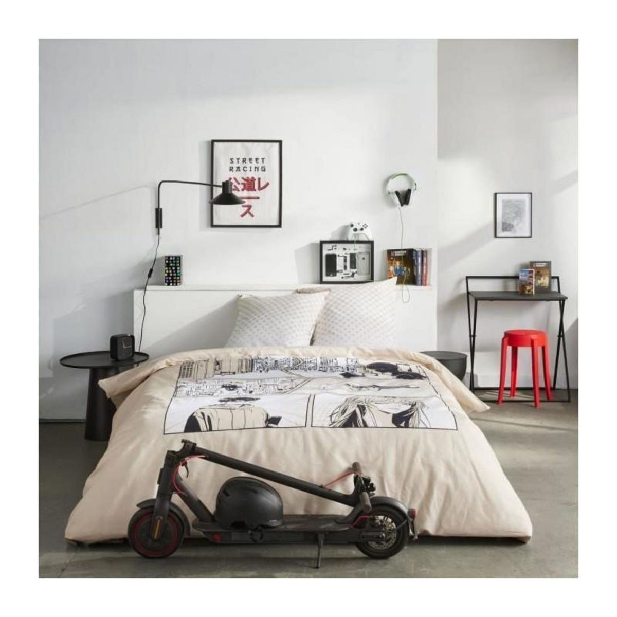 Parure de lit - TODAY - JAVA - 2 personnes - 240x220 cm - Coton - Imprimé Manga - Beige