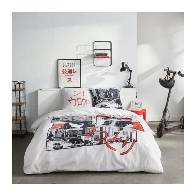 Parure de lit - TODAY - JAVA - 2 personnes - 240x220 cm - Coton - Imprimé Manga - Blanc