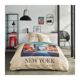 Parure de lit - TODAY - JAVA - 2 personnes - 240x220 cm - Coton - Imprimé New York - Beige