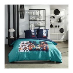Parure de lit - TODAY - JAVA - 2 personnes - 240x220 cm - Coton - Imprimé Tokyo - Turquoise