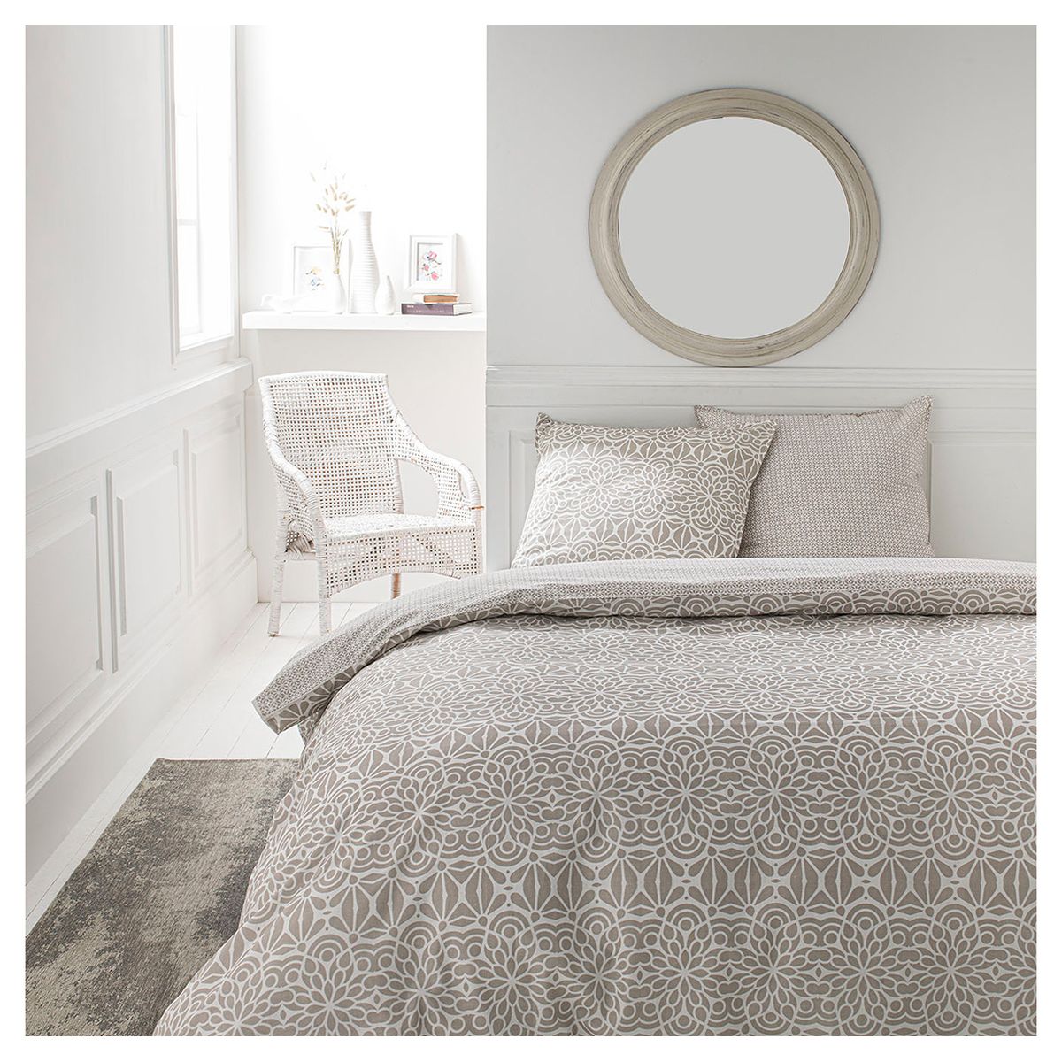 Parure housse de couette en coton 57 fils MAYA à imprimé réversible est un vrai élément de décoration ! Parure ultra confortable et moelleuse.