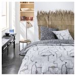 En savoir +Parure housse de couette + taies d'oreiller en toile pur coton. Un esprit ethnique revisité en noir et blanc chic et tendance... un linge de lit résolument déco qui donne du style à la chambre. On adore ! A noter, la jolie finition des taies par un petit volant plat. Housse de couette à base droite.