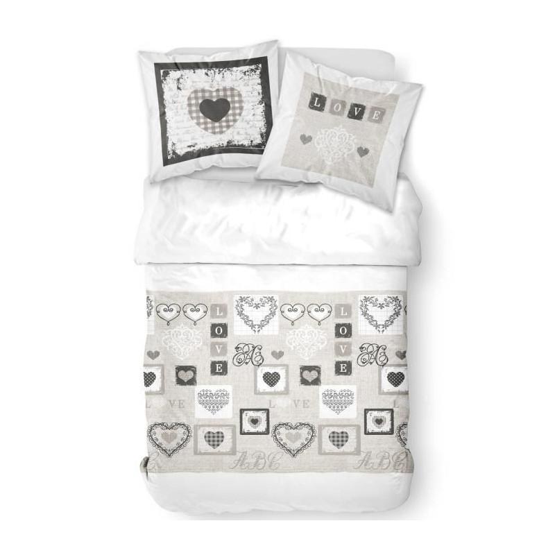 TODAY Parure de lit Coton 2 personnes - 240x260 cm - Imprime Blanc Eden