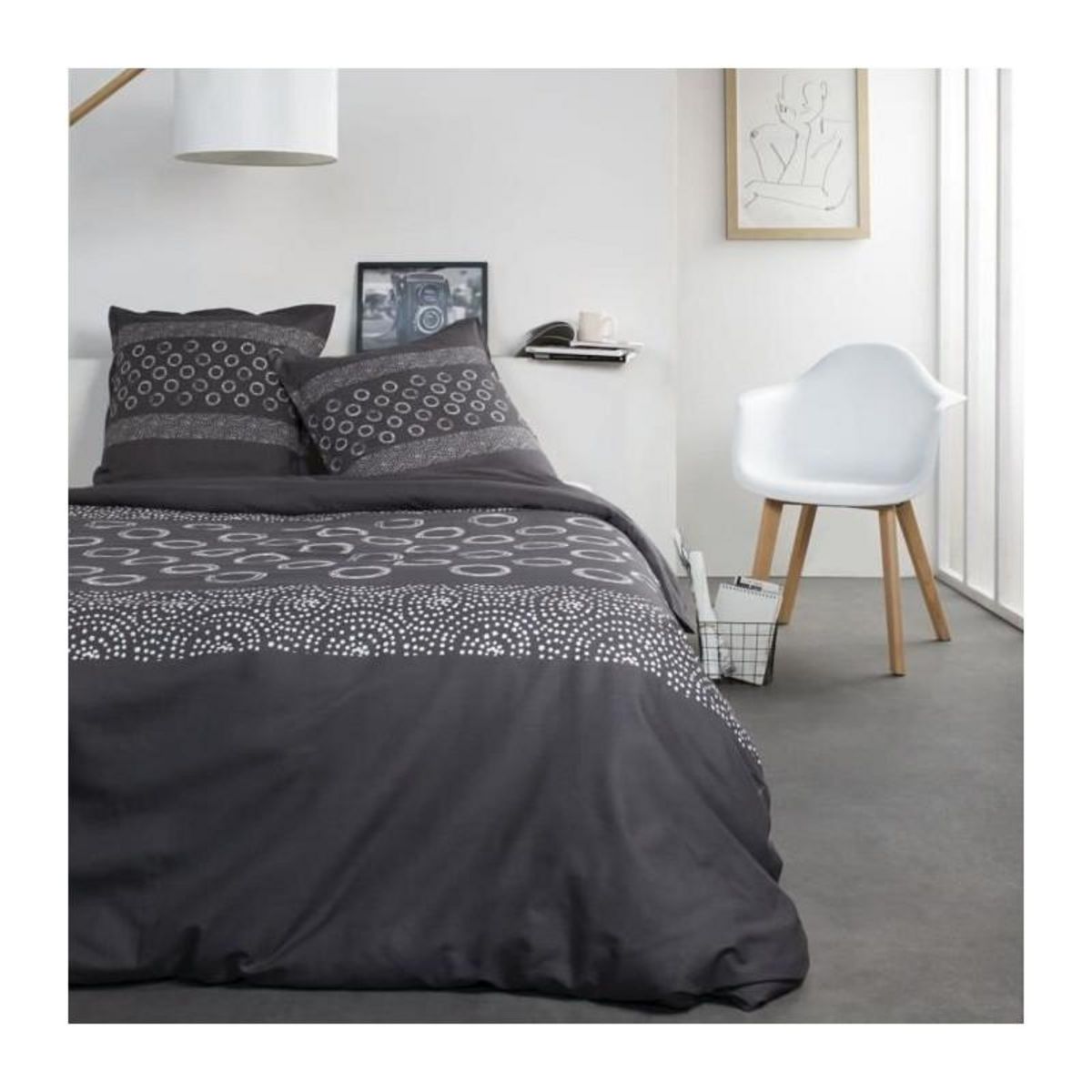 L'impression gris Gael de cette parure de lit ajoute une touche de sophistication à la décoration de votre chambre. Le design sobre et élégant s'intègre parfaitement dans les décors modernes, tout en offrant une certaine neutralité qui permet de l'associer à divers styles d'intérieur. Cela en fait un choix polyvalent pour ceux qui souhaitent un look contemporain sans compromettre sur le confort.