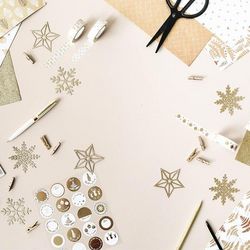 Le masking tape vous permet de personnaliser vos bujos, carnets, scrapbookings et autres créations. Plus souple et amovible que les rubans adhésifs altiques, profitez de ses motifs festifs couleur or sur fond blanc afin de personnaliser vos créations de Noël. Longueur : 10 m