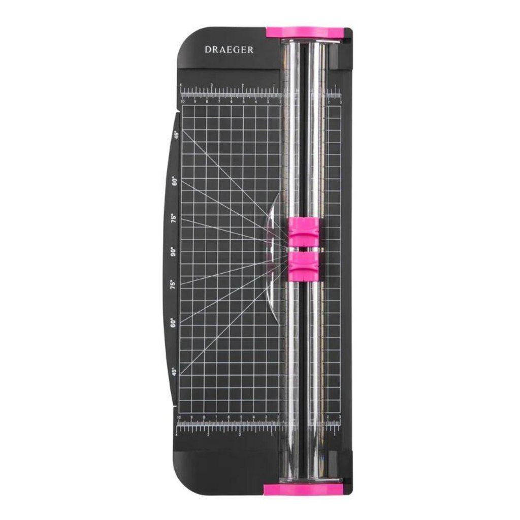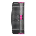 Découpez les matériaux que vous voulez jusqu'à 34 cm avec ce massicot noir et rose avec règle escamotable.