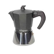Découvrez la cafetière Moka Tognana Ultra Class, conçue pour préparer délicieusement 3 tasses de café. Fabriquée en aluminium durable, elle garantit une répartition uniforme de la chaleur. Sa capacité est de 0,18 litre. Disponible dans une élégante couleur grise, elle s'adapte à tous types de plaques de cuisson, y compris à induction. Cette cafetière est légère, pesant seulement 390 grammes, ce qui la rend facile à manipuler. Profitez d'une expérience café exceptionnelle avec cet accessoire pratique et stylé.