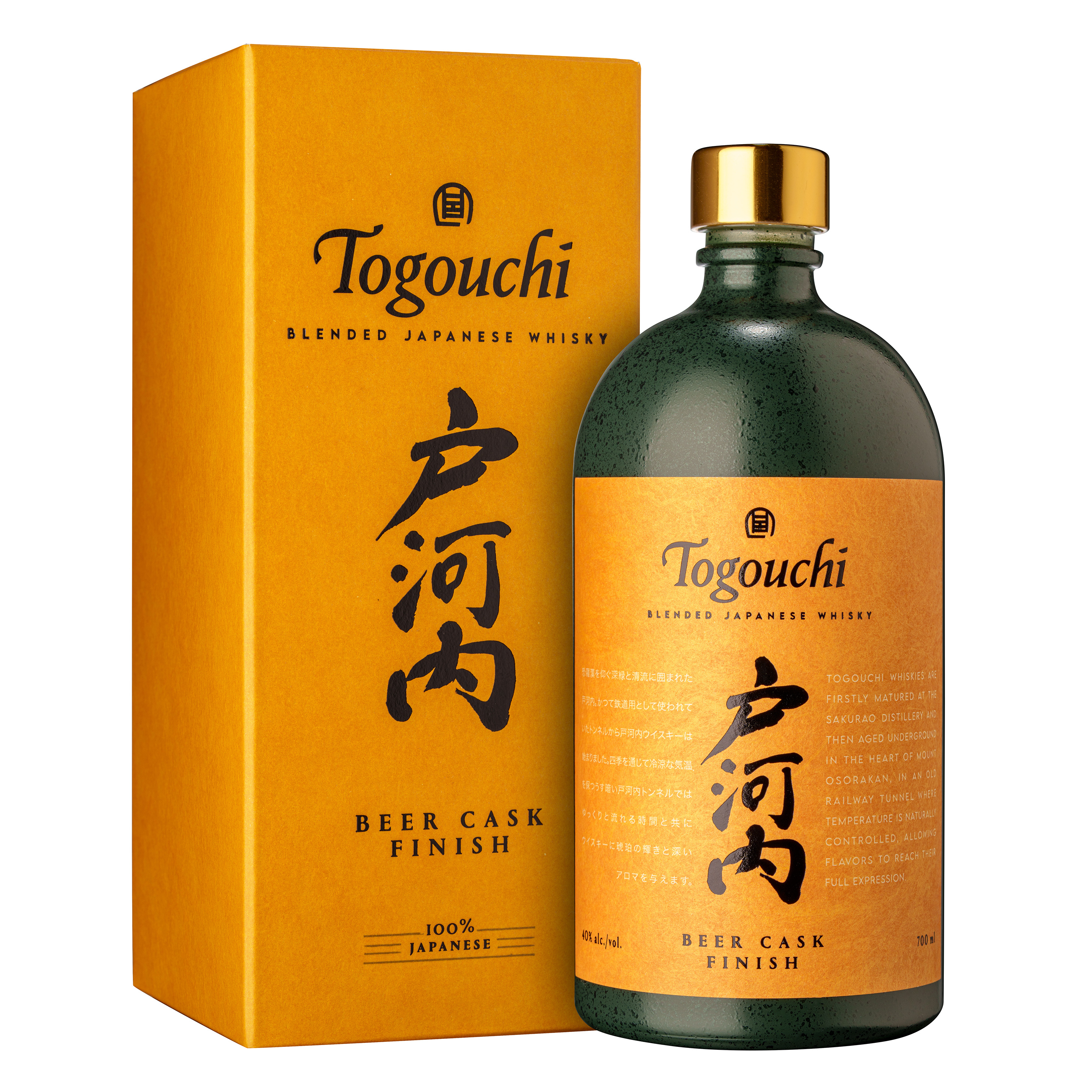 Togouchi Beer Cask Finish est un whisky japonais rond et gourmand qui résulte d'un assemblage unique de whiskies de grain et de malt distillés au bord de la mer de Seto, à la distillerie SAKURAO. Il est ensuite vieilli en fûts de bourbon dans un ancien tunnel ferroviaire où les conditions de vieillissement y sont particulièrement optimales, avant d'être affiné plusieurs mois en fûts de bière IPA.
