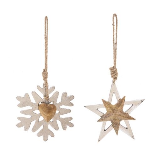 Faites entrez les douceurs de l'hiver dans la décoration de votre sapin avec ces suspensions pour sapin de Noël.FICHE TECHNIQUE- Décoration pour sapin de Noël en bois.- Lot de 2.CARACTERISTIQUES TECHNIQUES- Dimensions : L. 15 x P. 1,5 x H. 15 cm.- Poids : 0,15 kg.