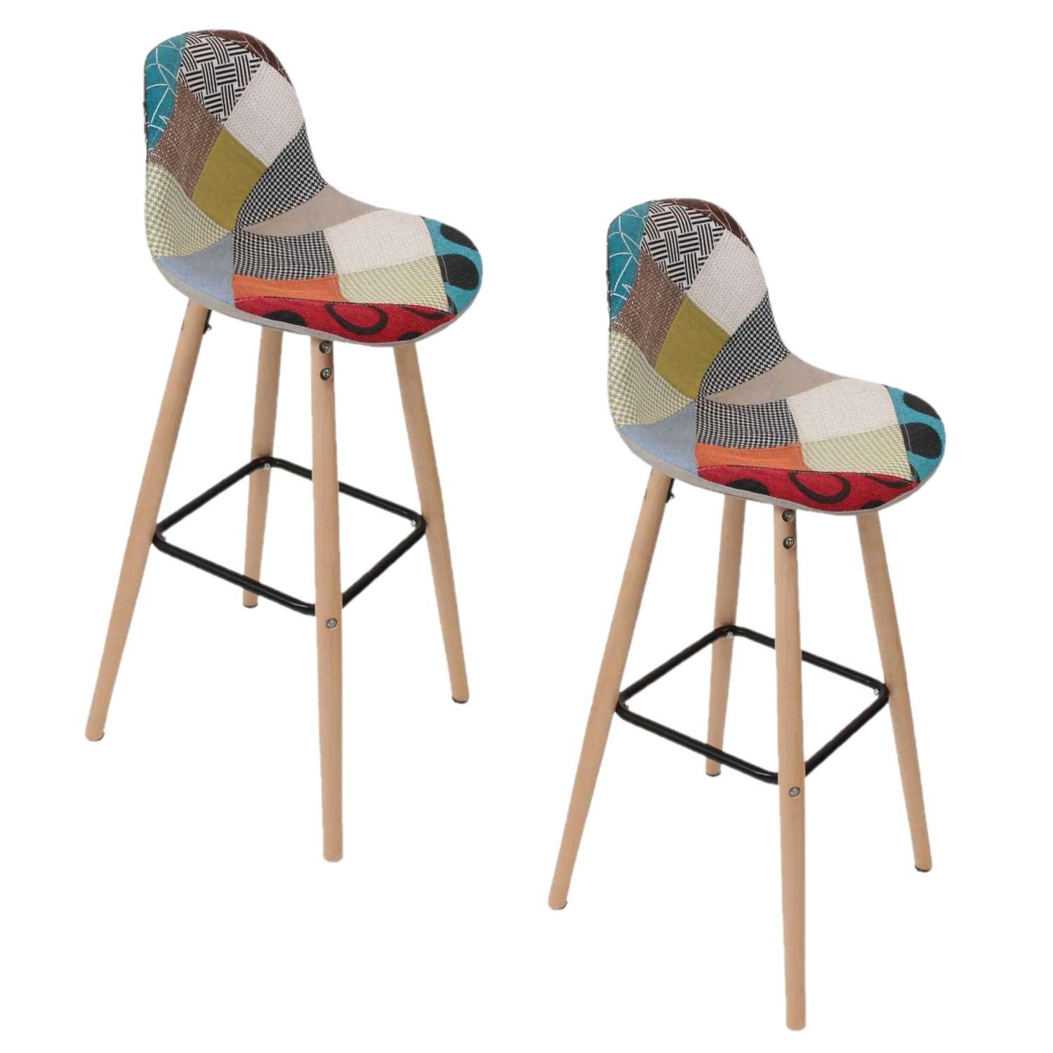 2 Tabourets de bar scandinaves patchwork Riga - H. 92 cm - Beige