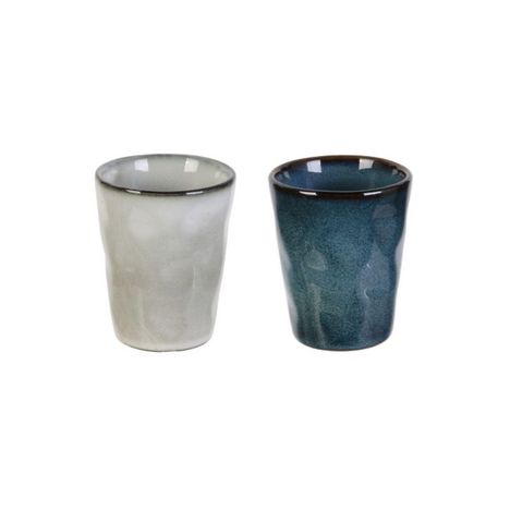 Apportez de la douceur à vos pauses gourmandes avec ces tasses à expresso au design minéral de style artisanal.FICHE TECHNIQUE- Tasse à expresso en céramique.- Lot de 2.CARACTERISTIQUES TECHNIQUES- Dimensions : Diam. 6 x H. 7,4 cm.- Contenance : 100 ml.- Poids : 0,10 kg.