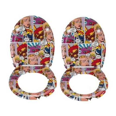 L'abattant WC premium aux finitions exclusives Pop-art antibactérien de WENKO décore les toilettes avec son motif ludique. Retrouvez de la bonne humeur à l'état pur les motifs colorés du pop-art sur les 3 faces de l'abattant WC, ainsi, qu'il soit ouvert ou fermé l'abattant devient votre touche déco personnelle.