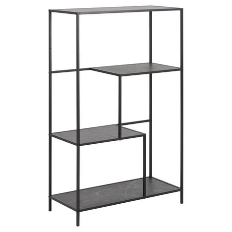 Bibliothèque 3 étagères asymétriques en Métal et Mélamine - H.114 cm - Noir