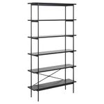 Caractérisée par des lignes épurées et une structure légère, Notre bibliothèque Aria apportera une touche de modernité à votre intérieur. Les 5 étagères en frêne noir offrent de grands espaces de rangement. Des pieds en métal enduits de poudre brute complètent le look.FICHE TECHNIQUE- Bibliothèque.-