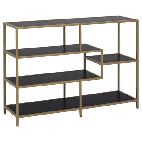 Bibliothèque ouverte 4 étagères en MDF et métal - Beige et Noir