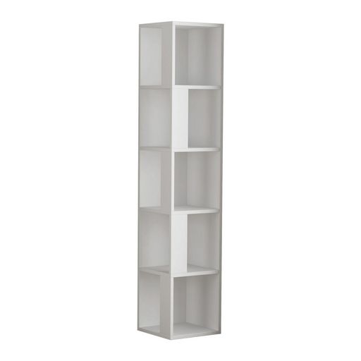 Cette bibliothèque d'angle vous permettra de ranger vos livres ou votre décoration sans vous prendre trop de place !FICHE TECHNIQUE- Blibliothèque en panneaux mélaminés de 18mm- Couleur : BlancCARACTERISTIQUES TECHNIQUES- Dimensions : 34 x 161 x 34 cm- Poids : 22 kg