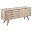 Vous allez adorer ce buffet qui est une version moderne du style scandinave. Il dispose de beaucoup de rangement avec 4 tiroirs et 1 porte coulissante. Vous pourrez remarquer le détail des poignées intégrées.