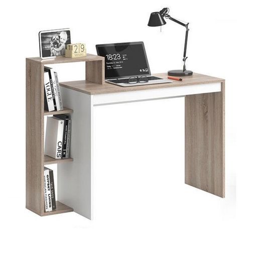 Ce bureau saura vous séduire par son design épuré. Sobre et pratique, il possède un long plateau et des étagères pour ranger vos affaires. On aime le mélange de sa structure blanche et de couleur bois chêne le rendant raffiné et tendance.FICHE TECHNIQUE- Bureau.- Structure du bureau en MDF 15 mm qua