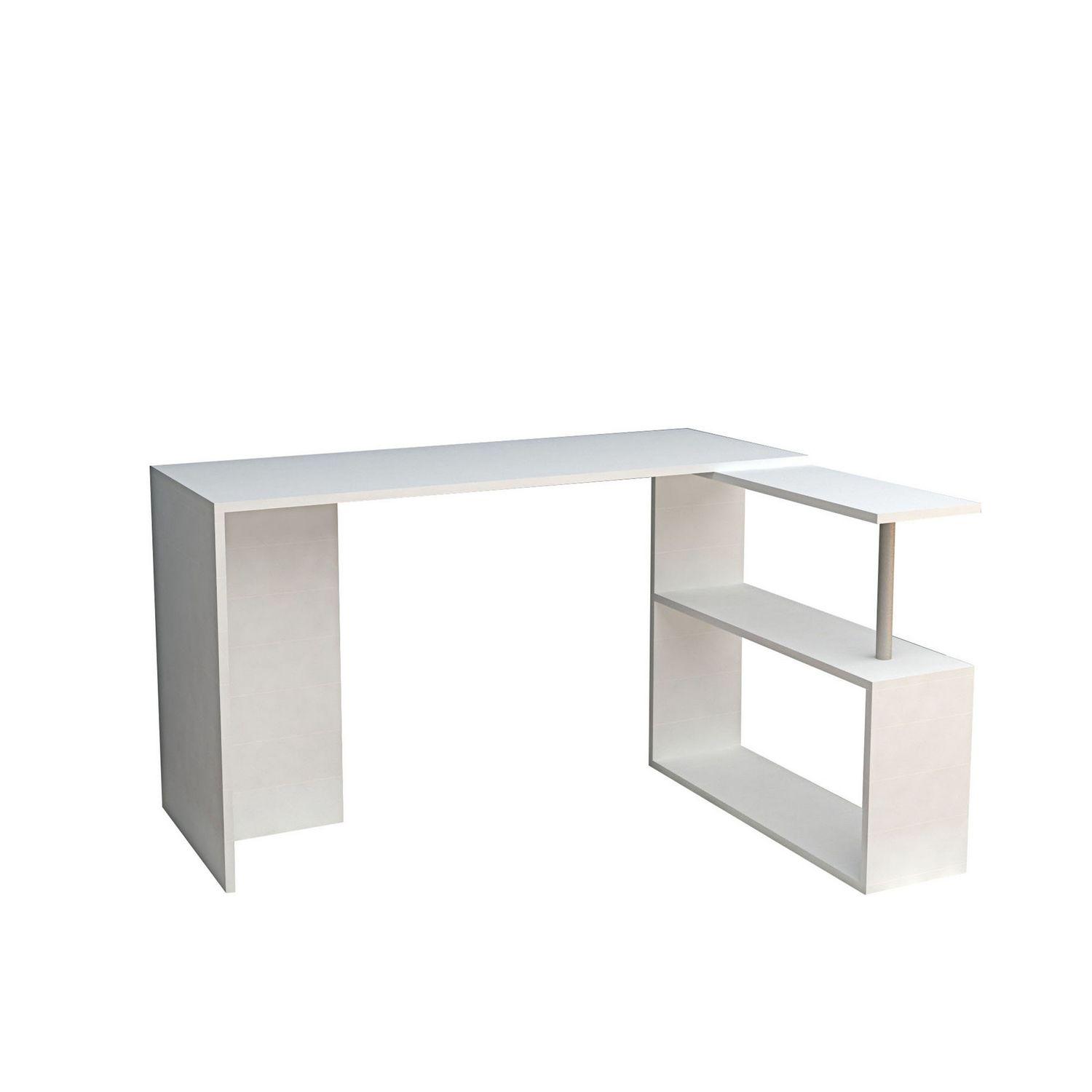 Bureau en forme de L avec étagères de rangement L.130 cm - Blanc