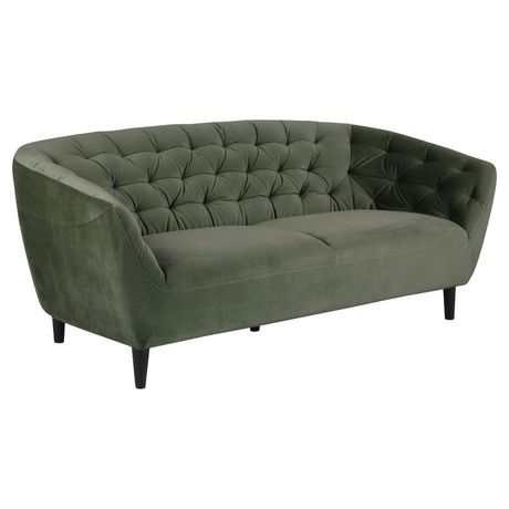 Ce canapé déborde de style. Il suffit de regarder le revêtement en velours et les détails capitonnés. Le tissu en velours a un toucher doux distinctif et ajoute de la profondeur à la pièce. En plus d'être agréable à regarder, le canapé est doté de ressorts ensachés qui vous garderont au chaud pendan
