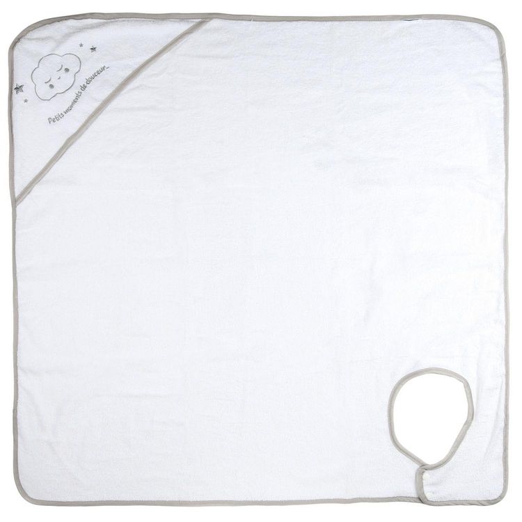 Cette cape de bain sera parfaite pour sécher bébé à la sortie du bain. Elle se présente avec un attache-cou pour davantage de praticité.FICHE TECHNIQUE- Cape de bain.- Message : petits moments de douceur.- Matière : Coton.- Forme : Carré.- Détails : avec attache cou.CARACTERISTIQUES TECHNIQUES- Dime