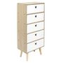 Chiffonnier 5 tiroirs - en MDF et Bois - Blanc et Marron