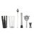 - Un shaker, un jigger, une cuillère de bar, un pilon et une passoire de bar 4 crochets.