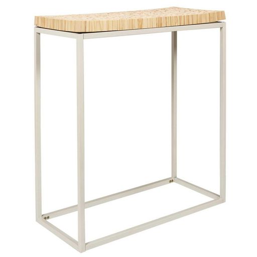 Console effet rondin de bois en métal et MDF - Blanc et beige.