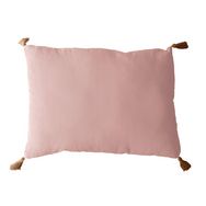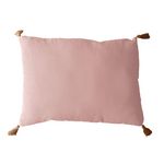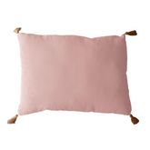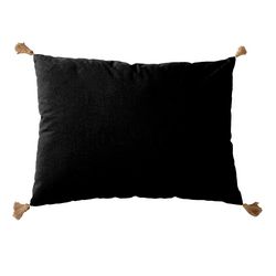 Coussin rectangulaire Panama avec 4 pompons en jute - 70 cm x 50 cm - Jaune moutarde