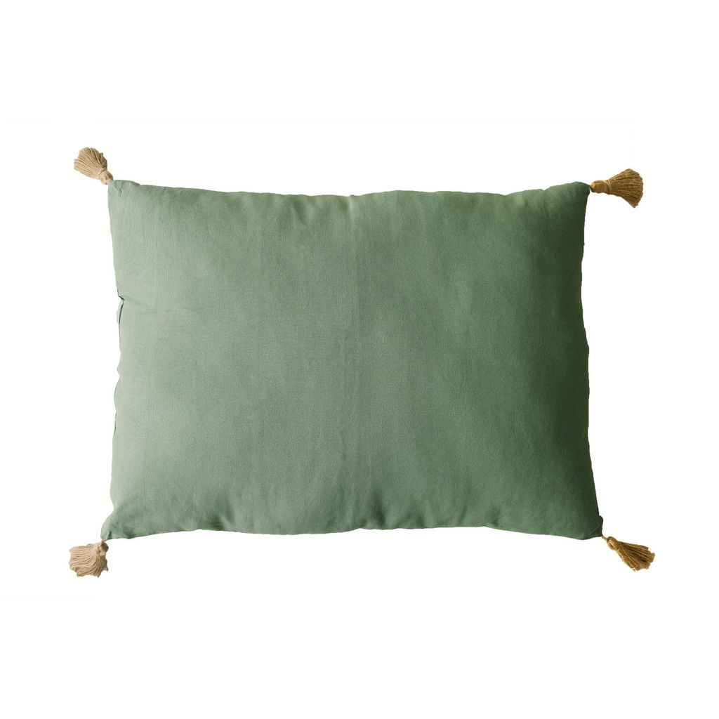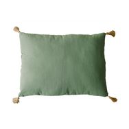Coussin rectangulaire Panama avec 4 pompons en jute - 70 cm x 50 cm - Vert Argile