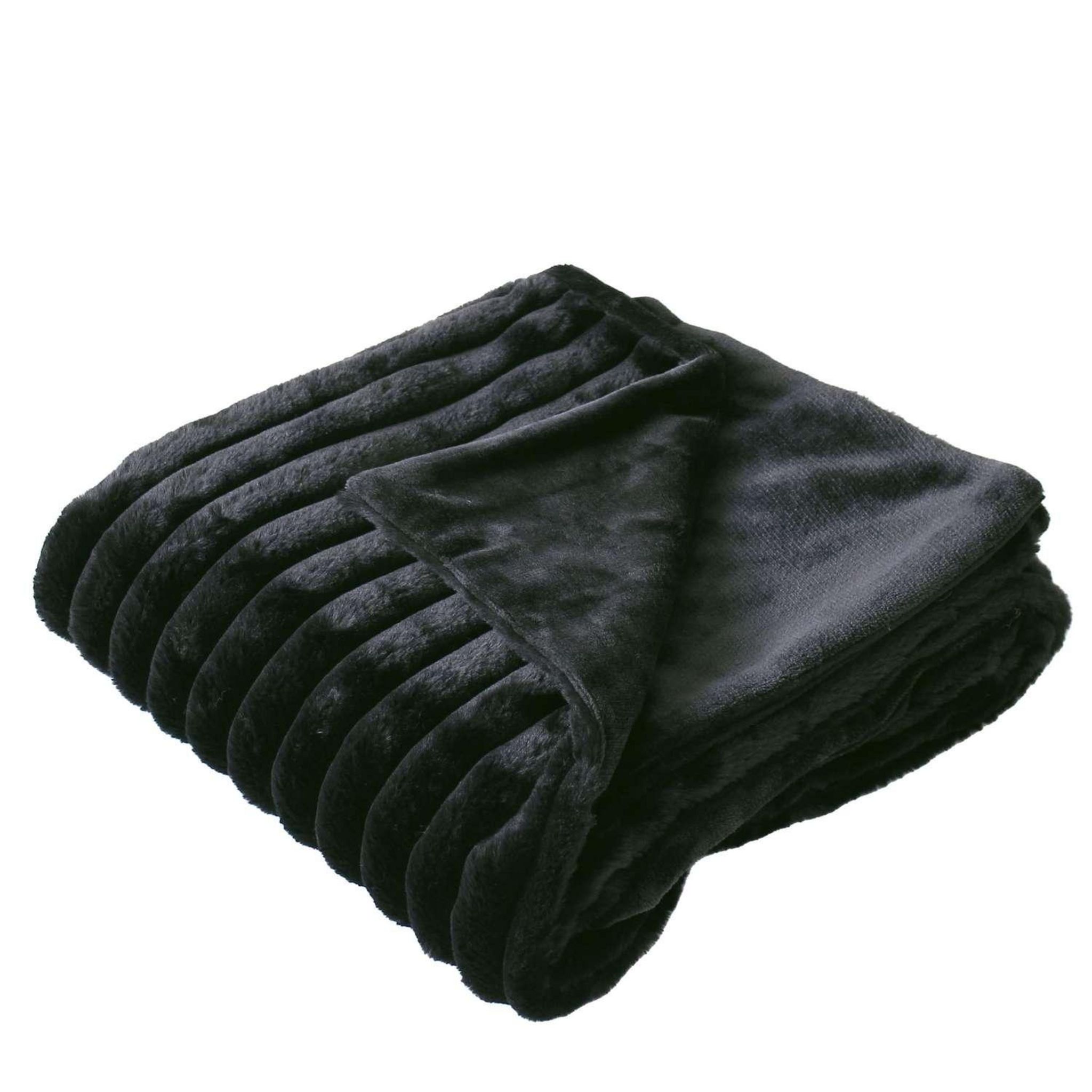 Couverture douce et côtelée Sela - 220 x 180 cm - Noir