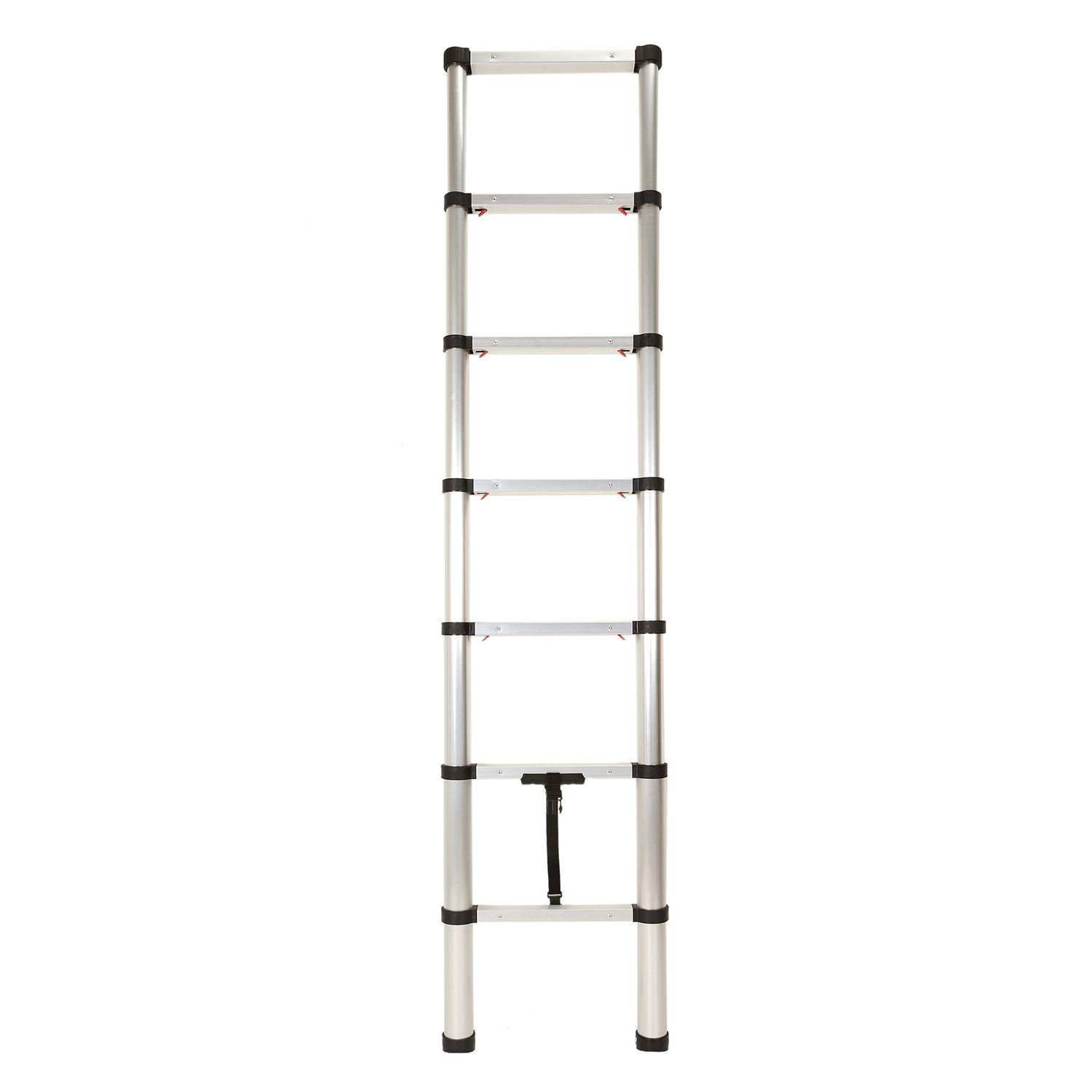 Cette échelle télescopique portative sera ultra pratique pour tous vos travaux en extérieur et en intérieurFICHE TECHNIQUE- Echelle télescopique portative.- Détails : jusqu'à 7 marches.- Matière : Aluminium.- Marches antidérapantes- Poignée agrippante.- Pieds antiglisse.- Loquet de sureté.- Modèle R