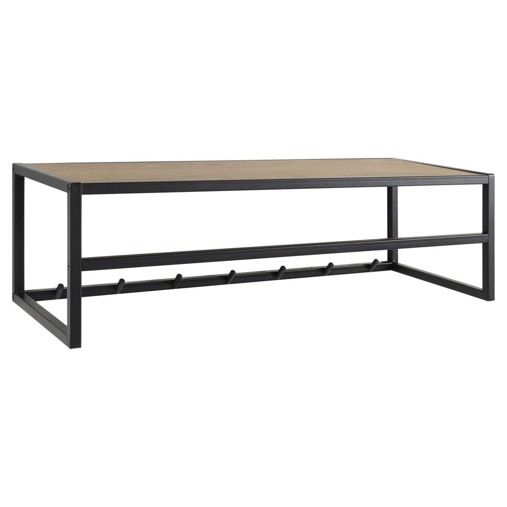 Etagère murale porte-manteau 7 accroches en MDF et Métal - Noir et beige