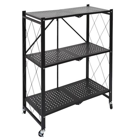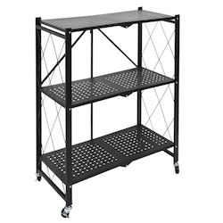 Gagnez de la place grâce à cette étagère pliable.FICHE TECHNIQUE- Etagère pliable.- Détails : 3 niveaux.- Matière : en Fer et Polypropylène.- Couleur : Noir.- Modèle sur Roulettes.CARACTERISTIQUES TECHNIQUES- Dimensions : Longueur 71,50 cm x Profondeur 34 cm x Hauteur 86 cm.- Poids : 7,300 kg.