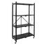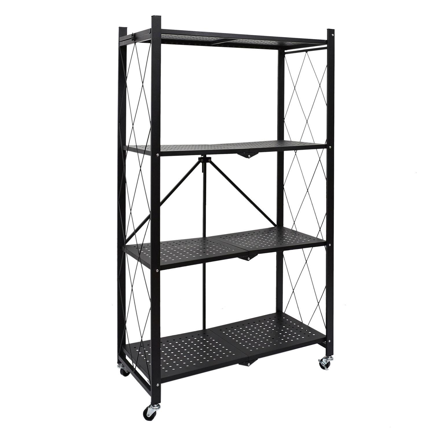 Gagnez de la place grâce à cette étagère pliable.FICHE TECHNIQUE- Etagère pliable.- Détails : 4 niveaux.- Matière : en Fer et Polypropylène.- Couleur : Noir.- Modèle sur Roulettes.CARACTERISTIQUES TECHNIQUES- Dimensions : Longueur 71,50 cm x Profondeur 34 cm x Hauteur 127 cm.- Poids : 7,300 kg.