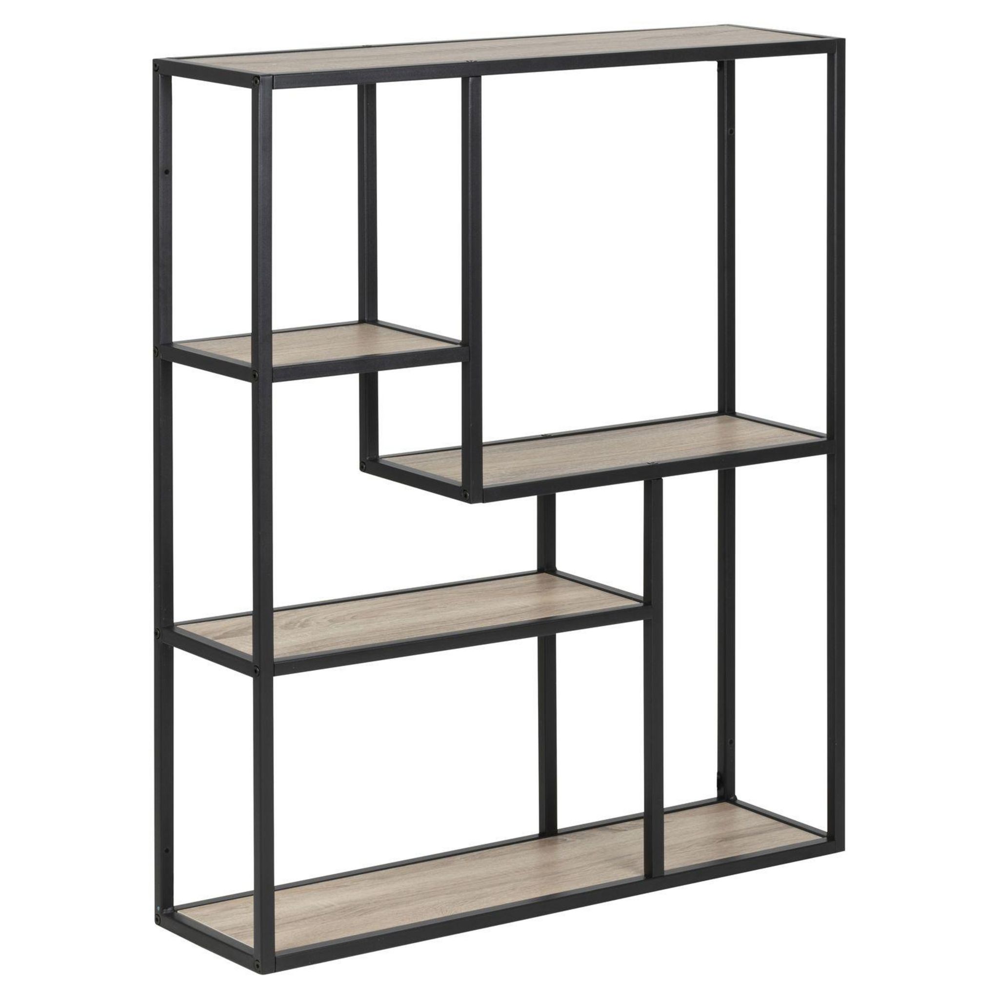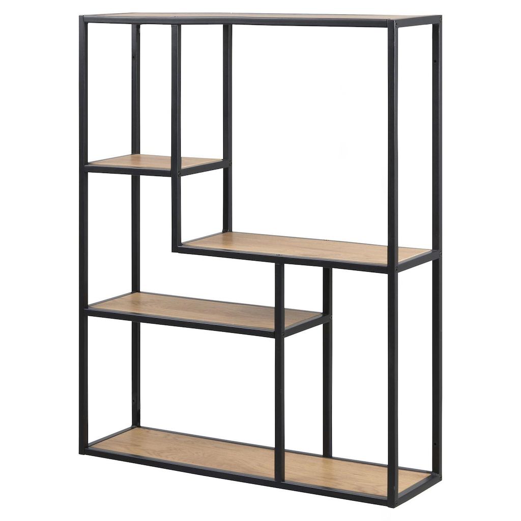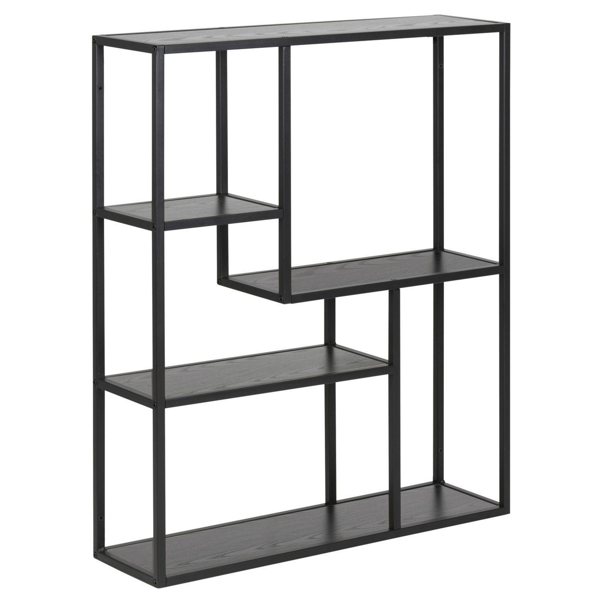Donnez vie à vos murs en les décorant. Vous apprécierez cette étagère murale au style industriel pour son design minimaliste et ses multiples tablettes de rangement. Conçue avec un cadre en métal et 3 tablettes centrales, leur position asymétrique permettront à votre décoration de se démarquer plus