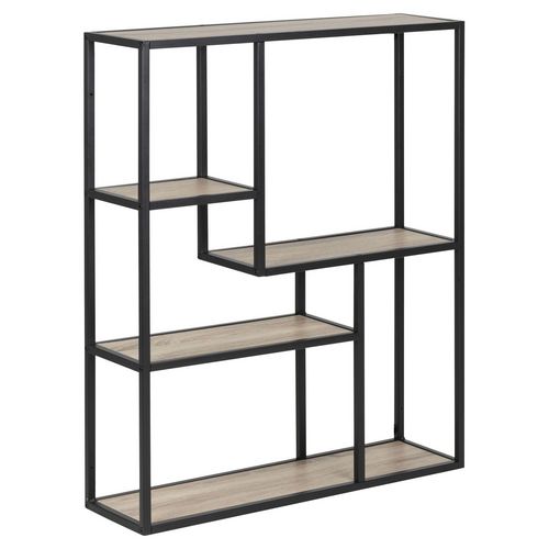 Donnez vie à vos murs en les décorant. Vous apprécierez cette étagère murale au style industriel pour son design minimaliste et ses multiples tablettes de rangement. Conçue avec un cadre en métal et 3 tablettes centrales, leur position asymétrique permettront à votre décoration de se démarquer plus facilement.