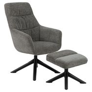 Fauteuil de salon avec accoudoirs et repose-pieds - Gris et Noir