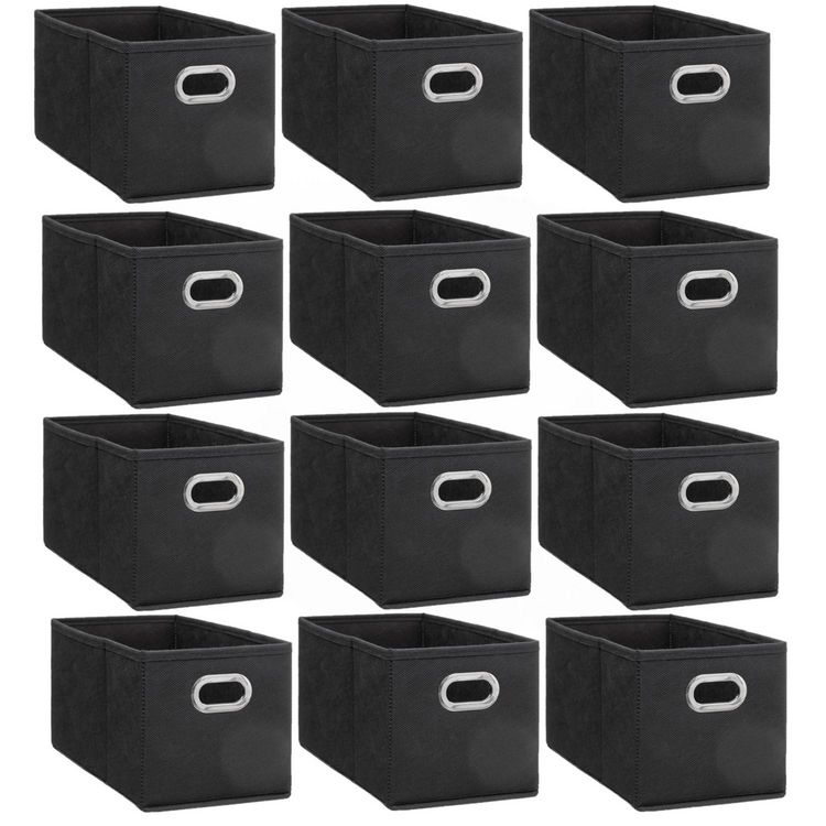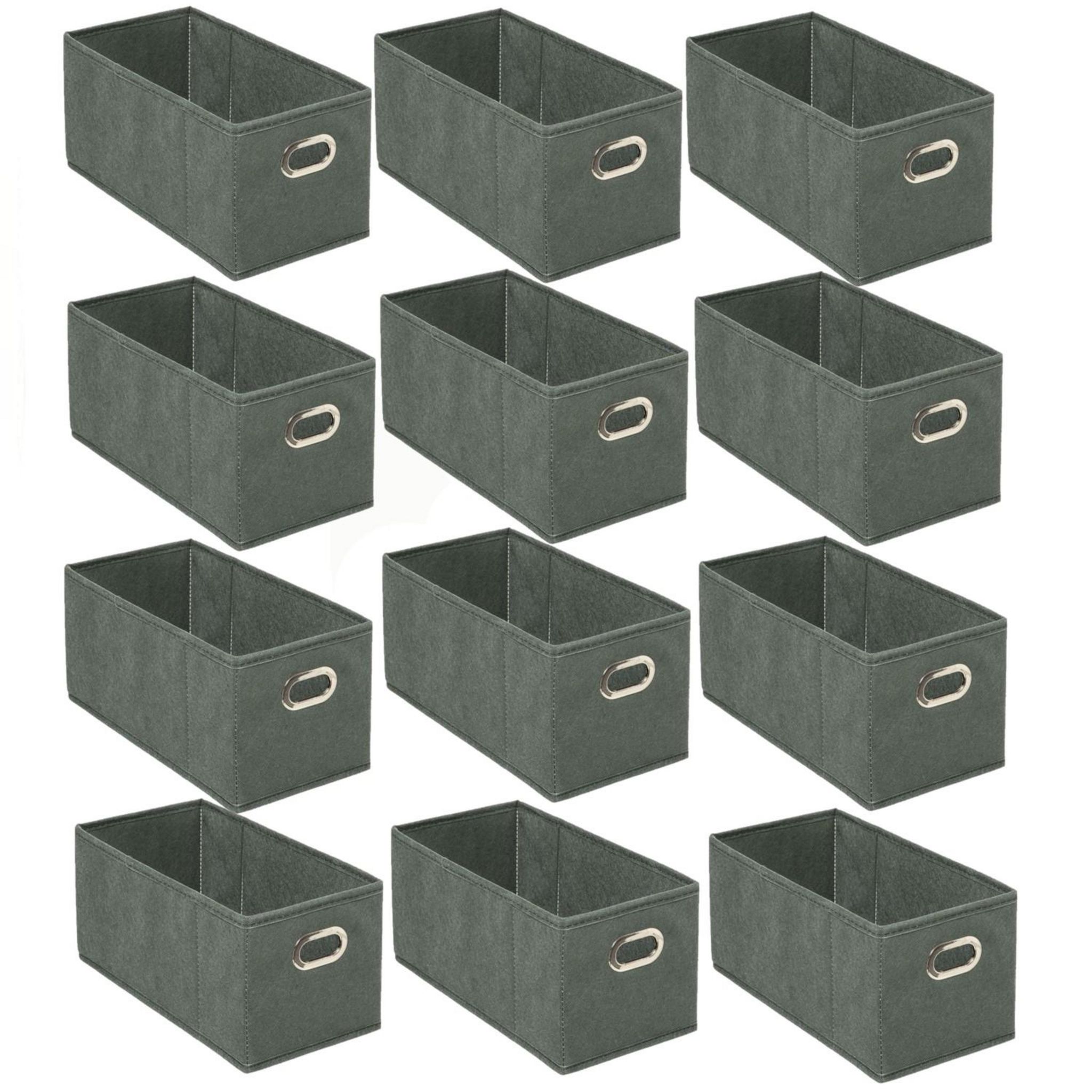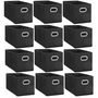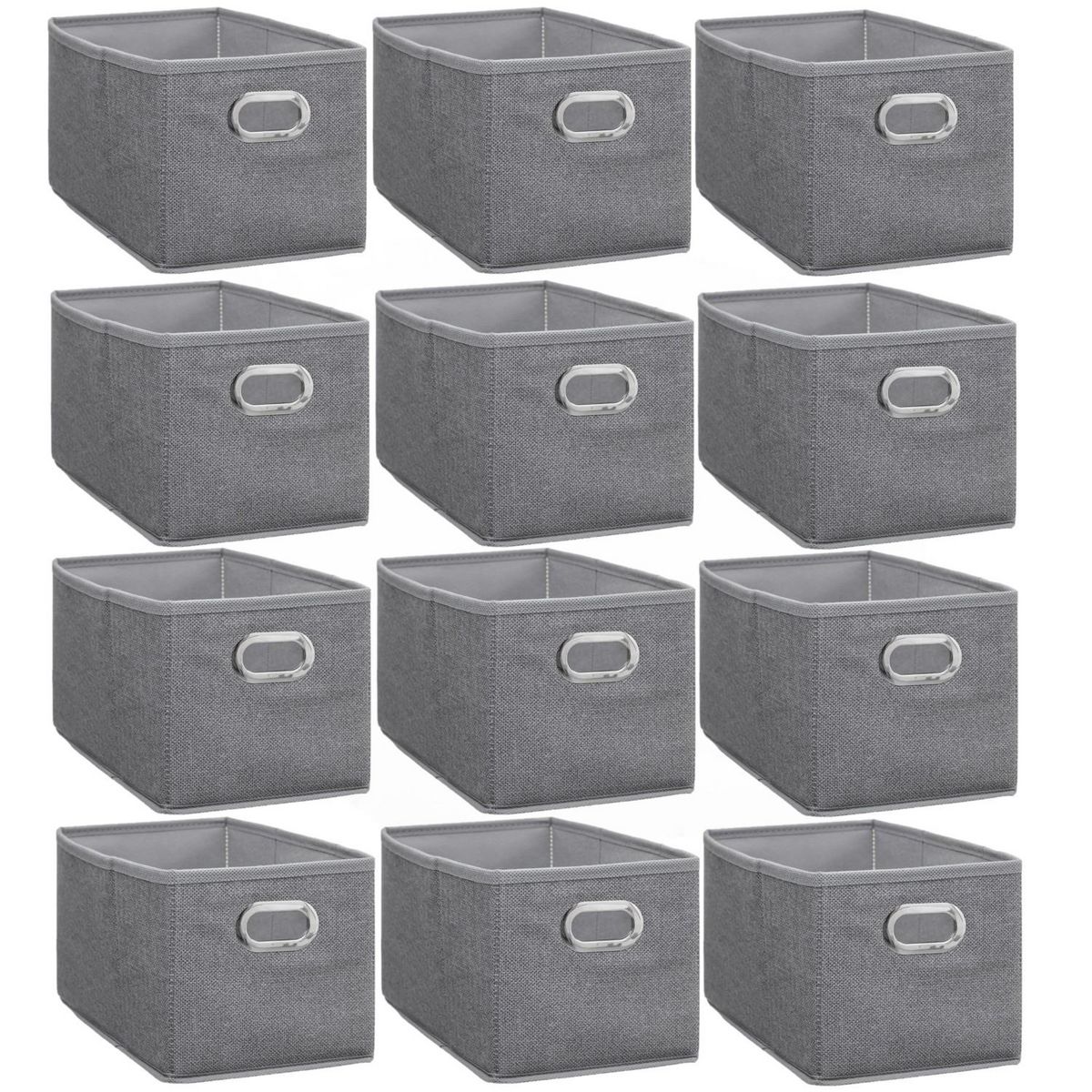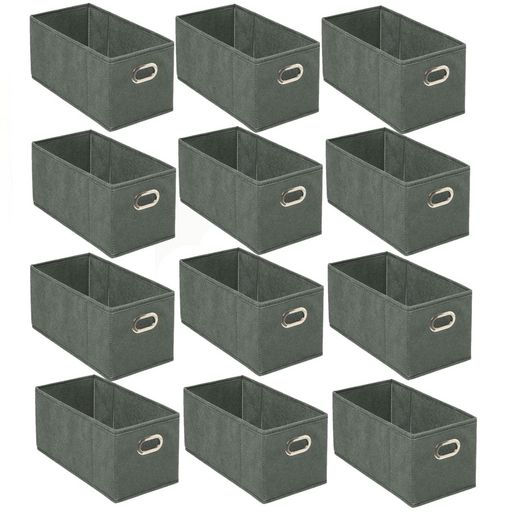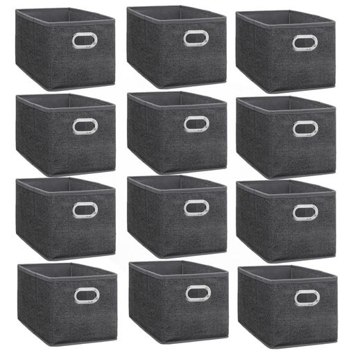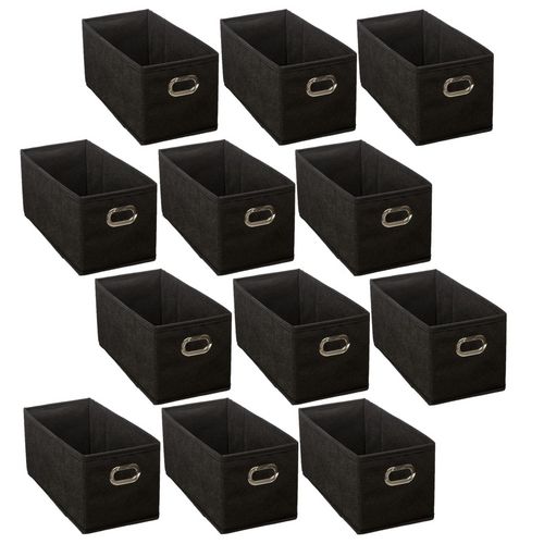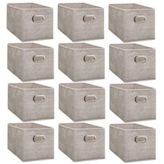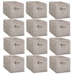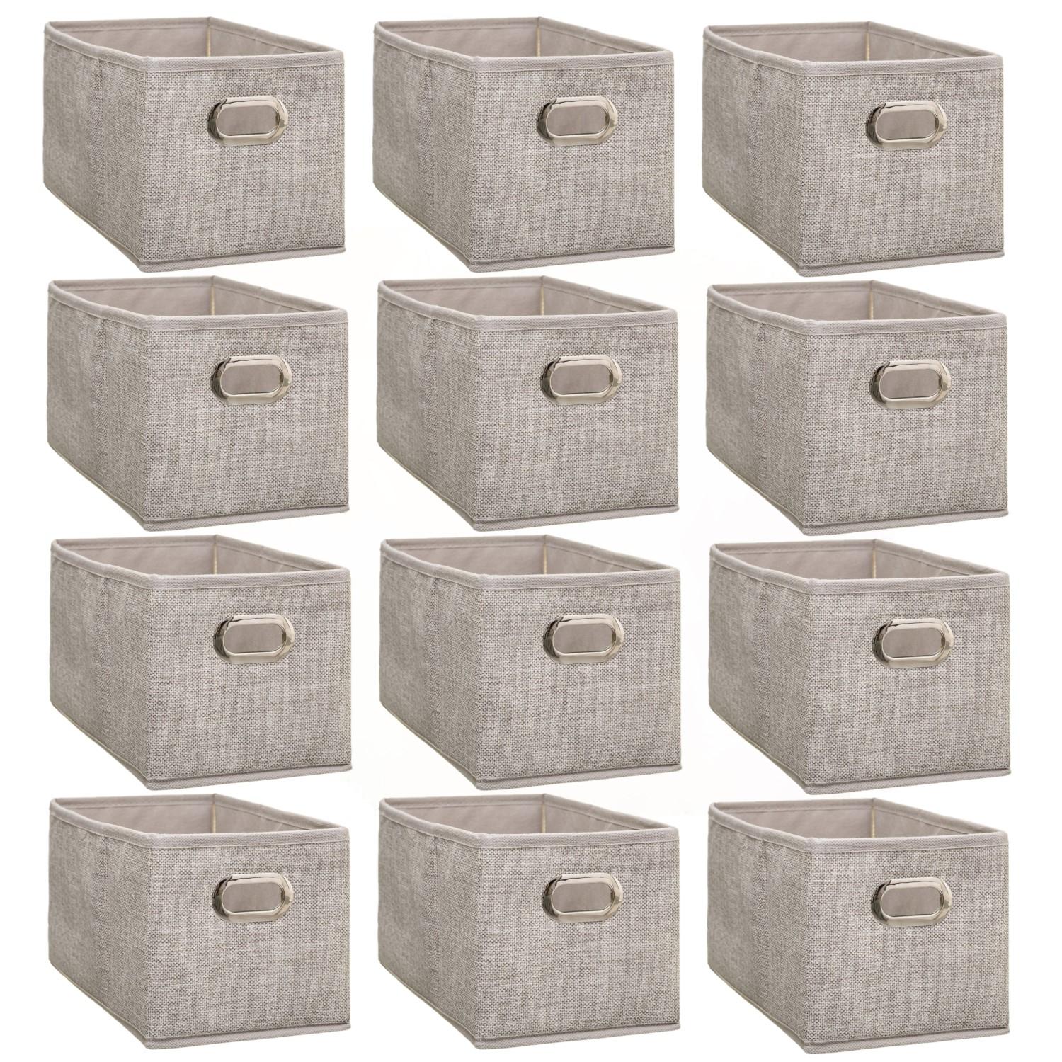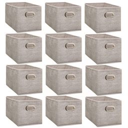 Lot de 12 Boites de rangement en tissu avec poignée - Longueur 31 x Hauteur 15 cm - Beige chiné