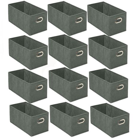 Notre Lot de 12 boîtes de rangement rectangulaires, en tissu, sont pliables. Idéales pour des rangements discrets, ces boites sont compatibles avec les meubles Mix'n Modul.FICHE TECHNIQUE- Lot de 12 Boites de rangement.- Couleur : Gris chiné.- Structure en carton.- Revêtement en Polypropylène.- Poig