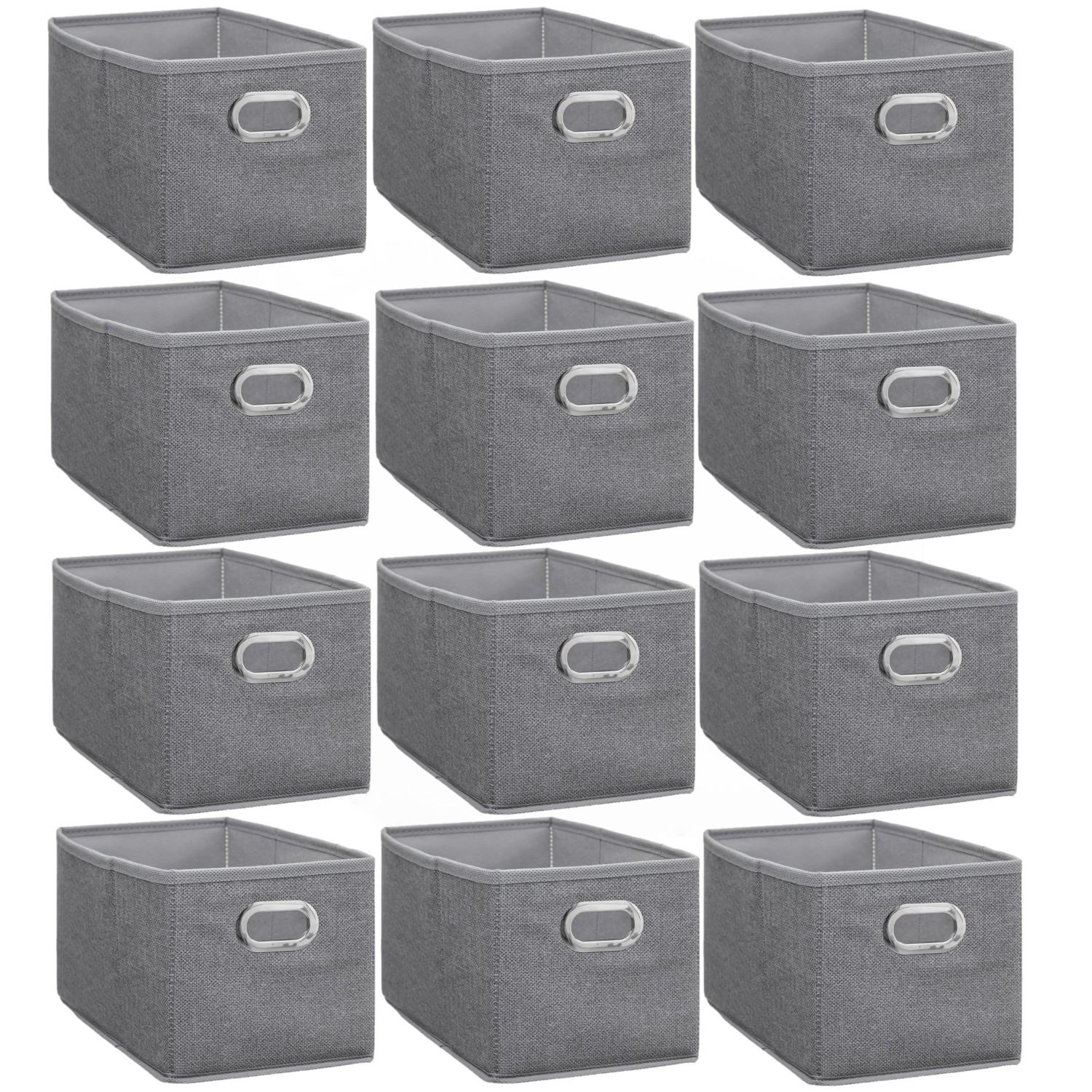 Lot de 12 Boites de rangement en tissu avec poignée - Longueur 31 x Hauteur 15 cm - Gris chiné