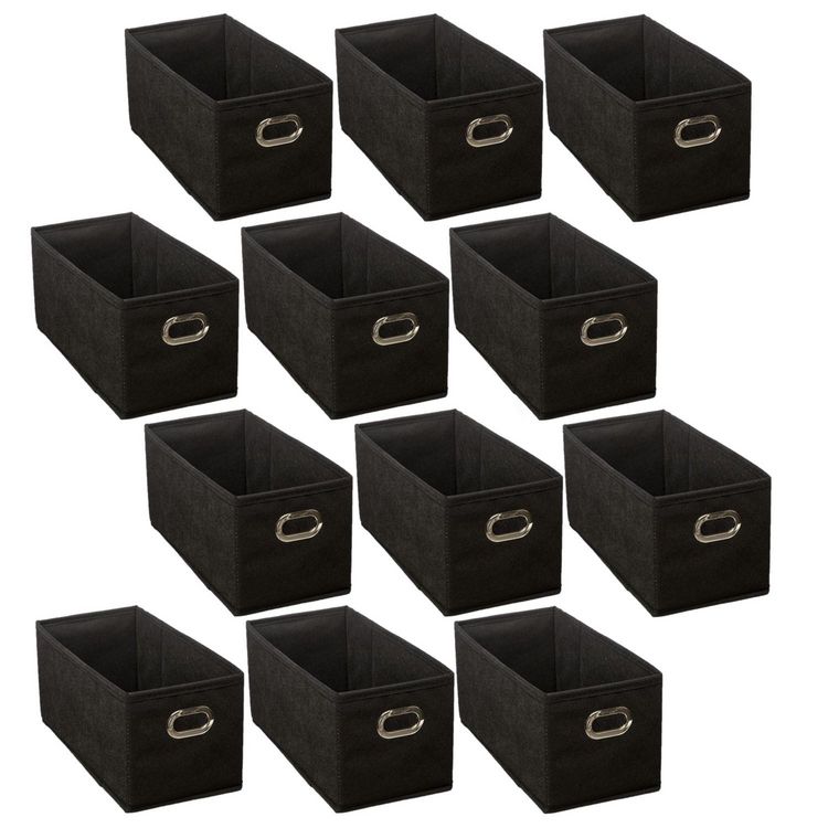 Notre Lot de 12 boîtes de rangement rectangulaires, en tissu, sont pliables. Idéales pour des rangements discrets, ces boites sont compatibles avec les meubles Mix'n Modul.