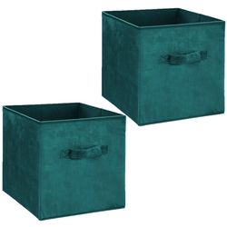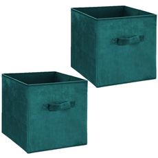 Lot de 2 Boites de rangement design velours Mix n' modul - L. 31 x l. 31 cm - Bleu Canard