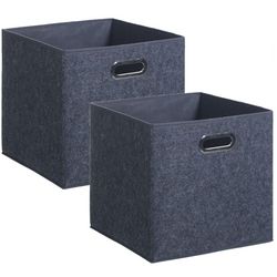 Lot de 2 boites de rangement en feutrine - L. 31 cm x H. 31 cm - Gris foncé chiné