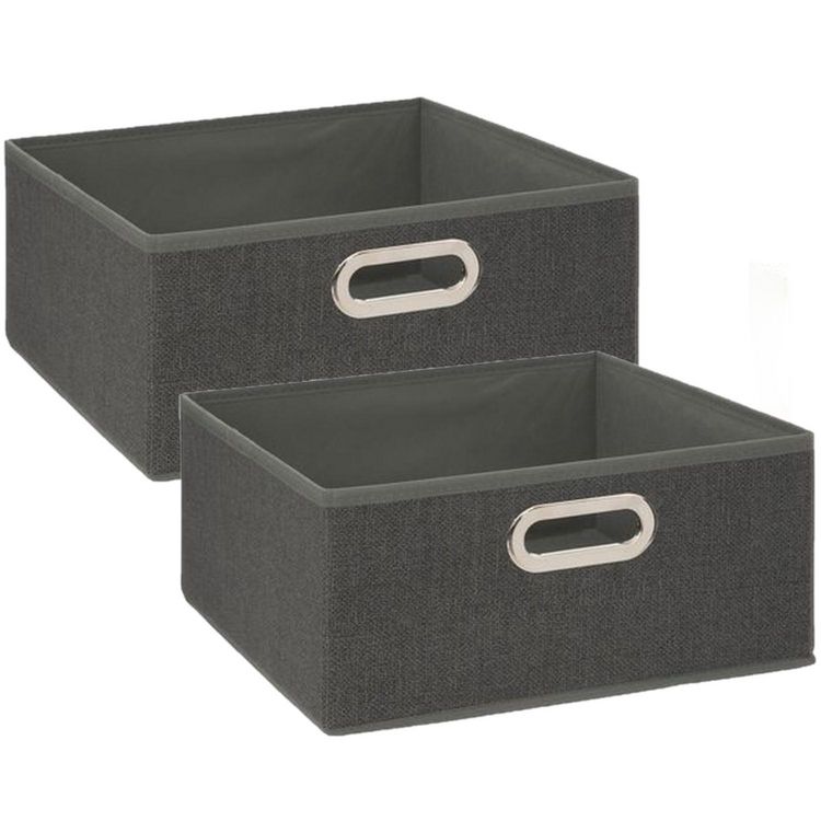Lot de 2 Boites de rangement en tissu l.31 x h. 15 cm - Gris foncé chiné